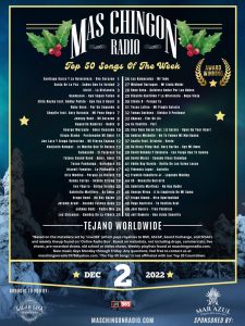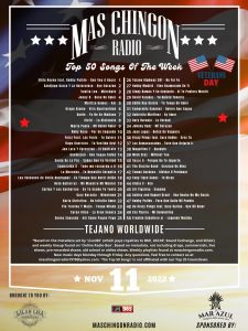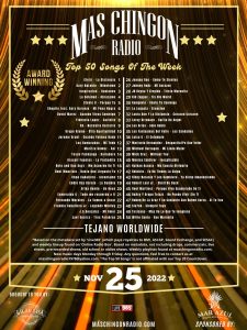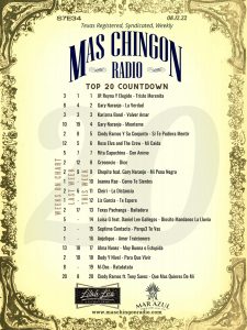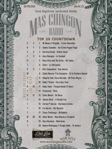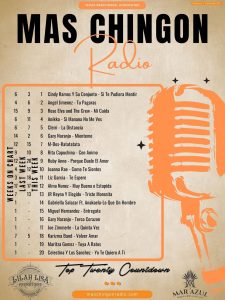 - "La Distancia" charts No. 1 on Mas Chingon Radio (see chart below)