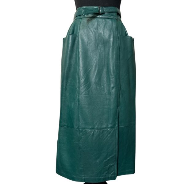 70S Vintage Winter Green Leather High Waisted Skirt #vintage #leather #omanti